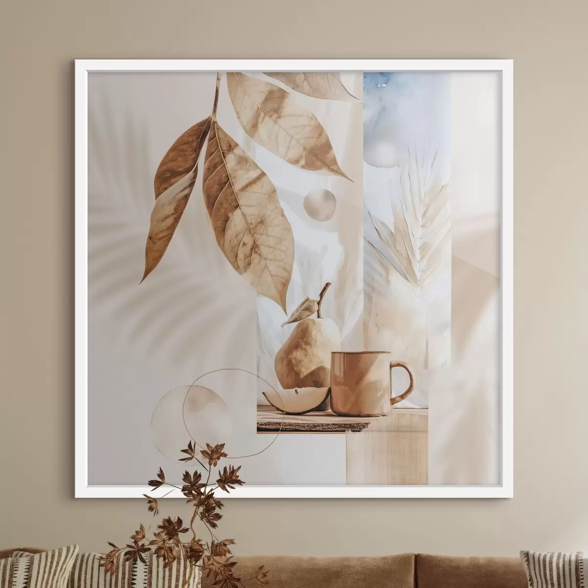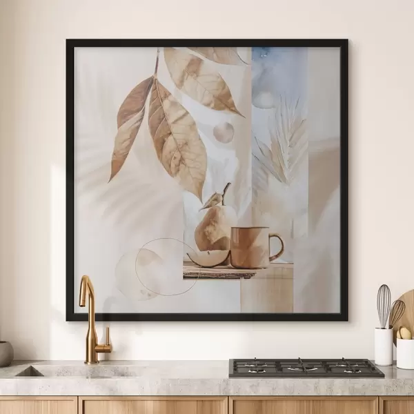 Poster Rezumat cu frunze, pară și ceașcă f47047