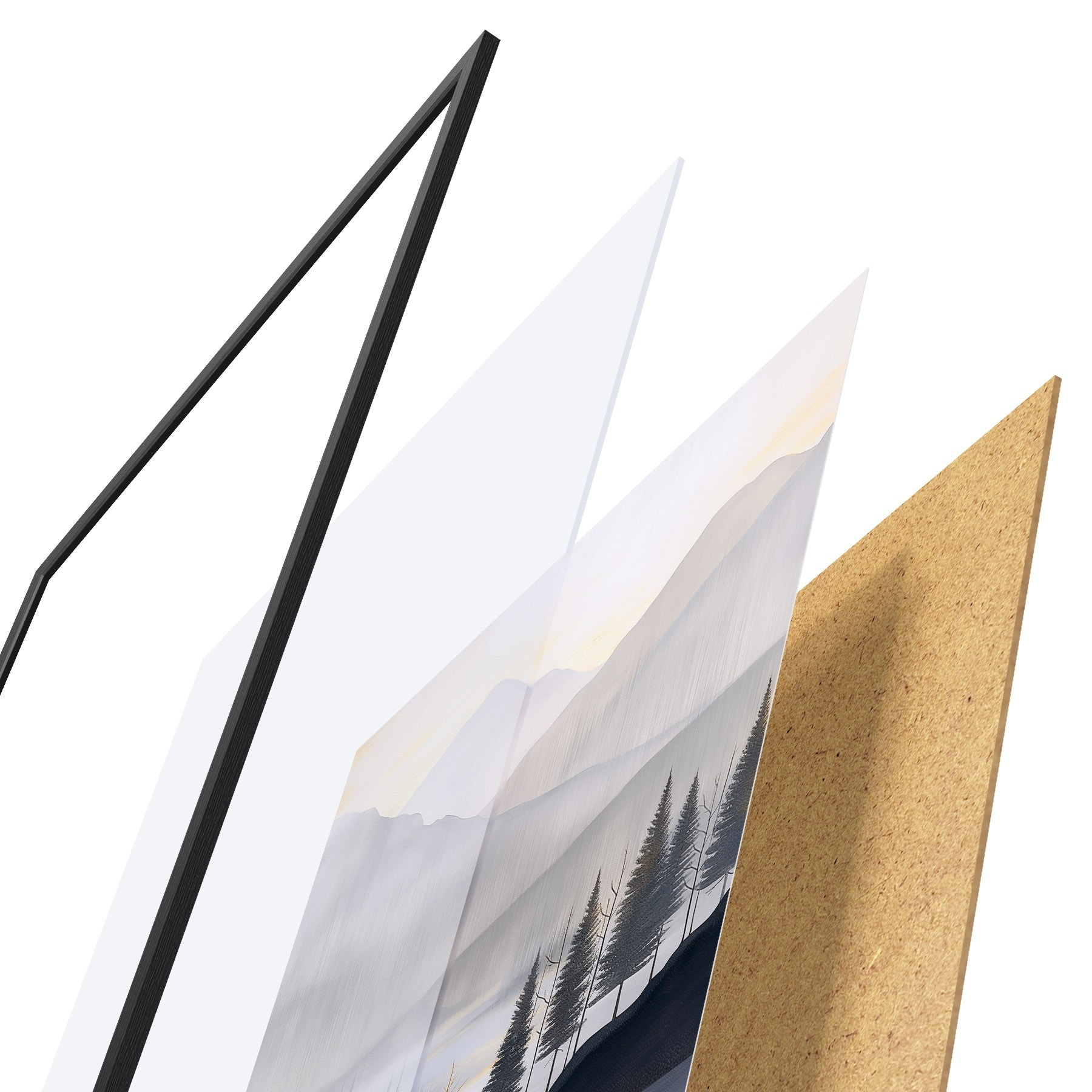 Afișul constă dintr-o ramă, plexiglas, imagine imprimată și suport din PAL. Posterul poate fi agățat imediat pe perete datorită suporturilor de pe spate.
