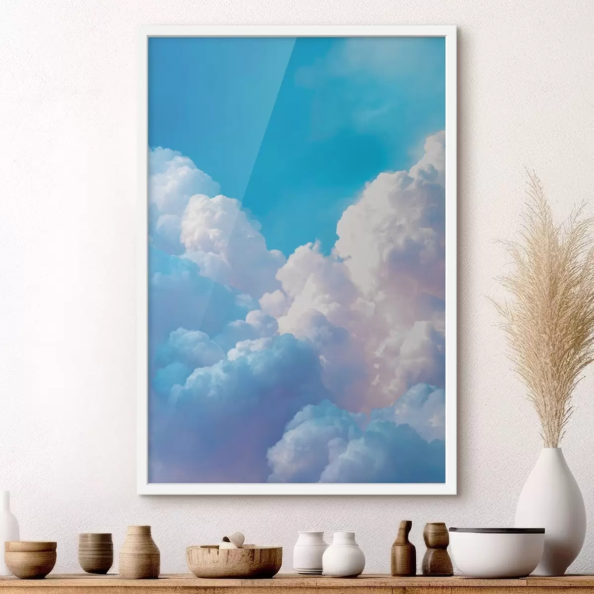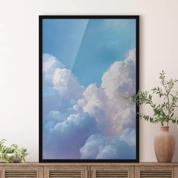 Poster Peisaj pitoresc al cerului cu nori albi masivi în stil grafic digital Nr f47089