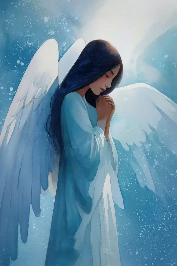 Poster Armonie în acuarelă: înger în lumină pe fundal albastru Nr f47094