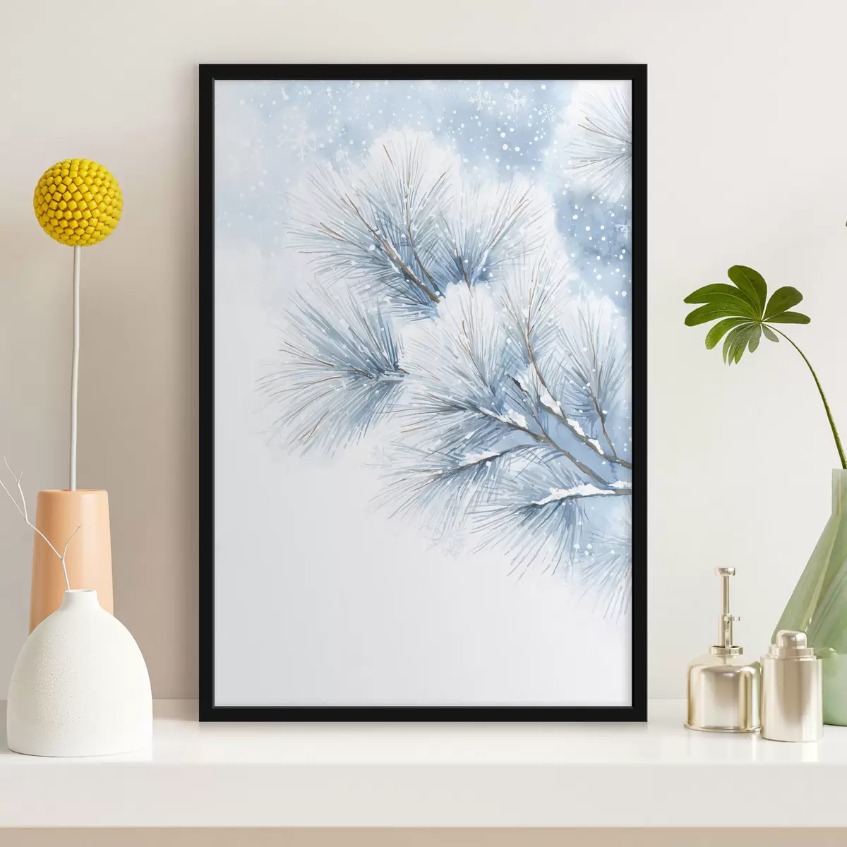 Poster ramură de pin acoperită de zăpadă în stil acuarelă Nr f47114