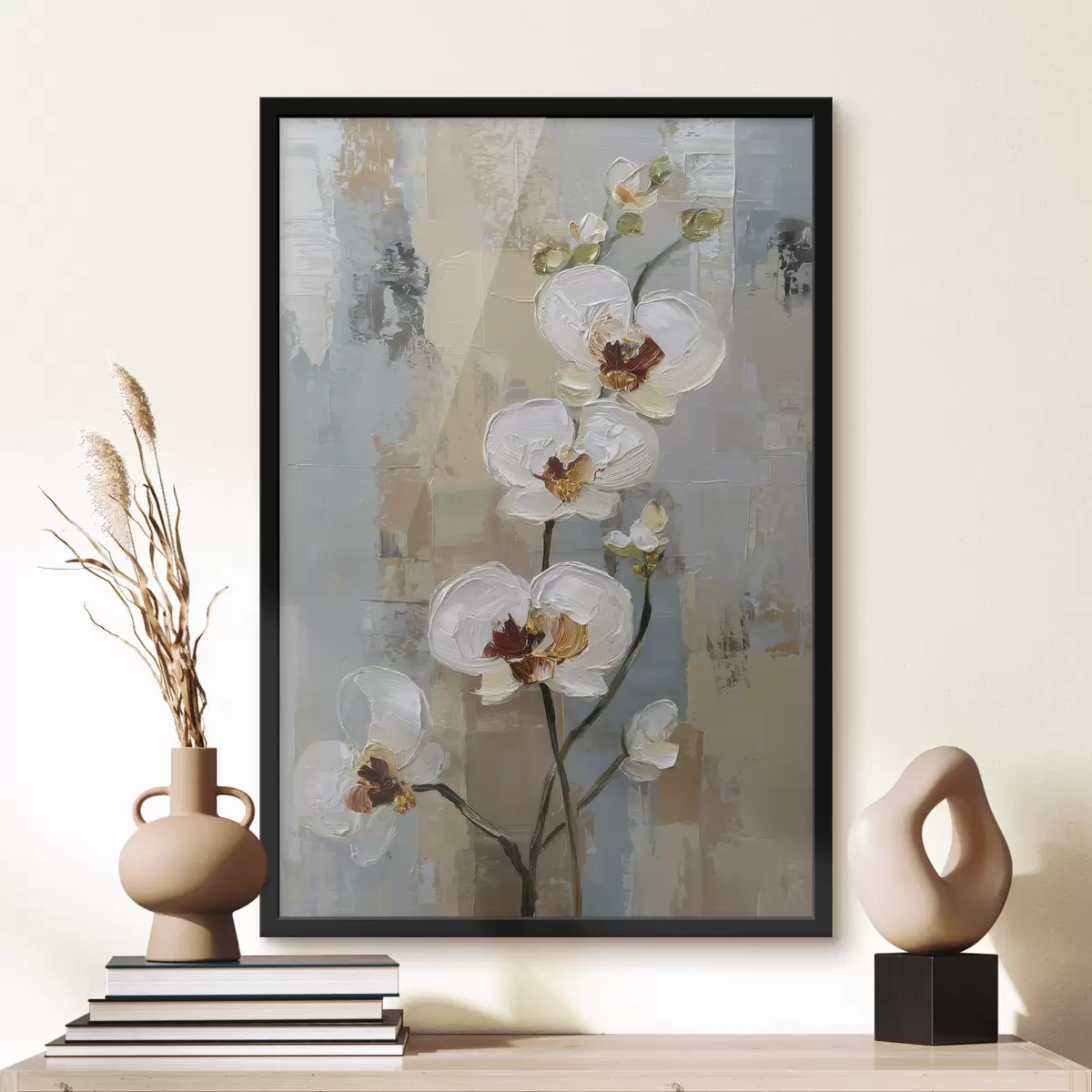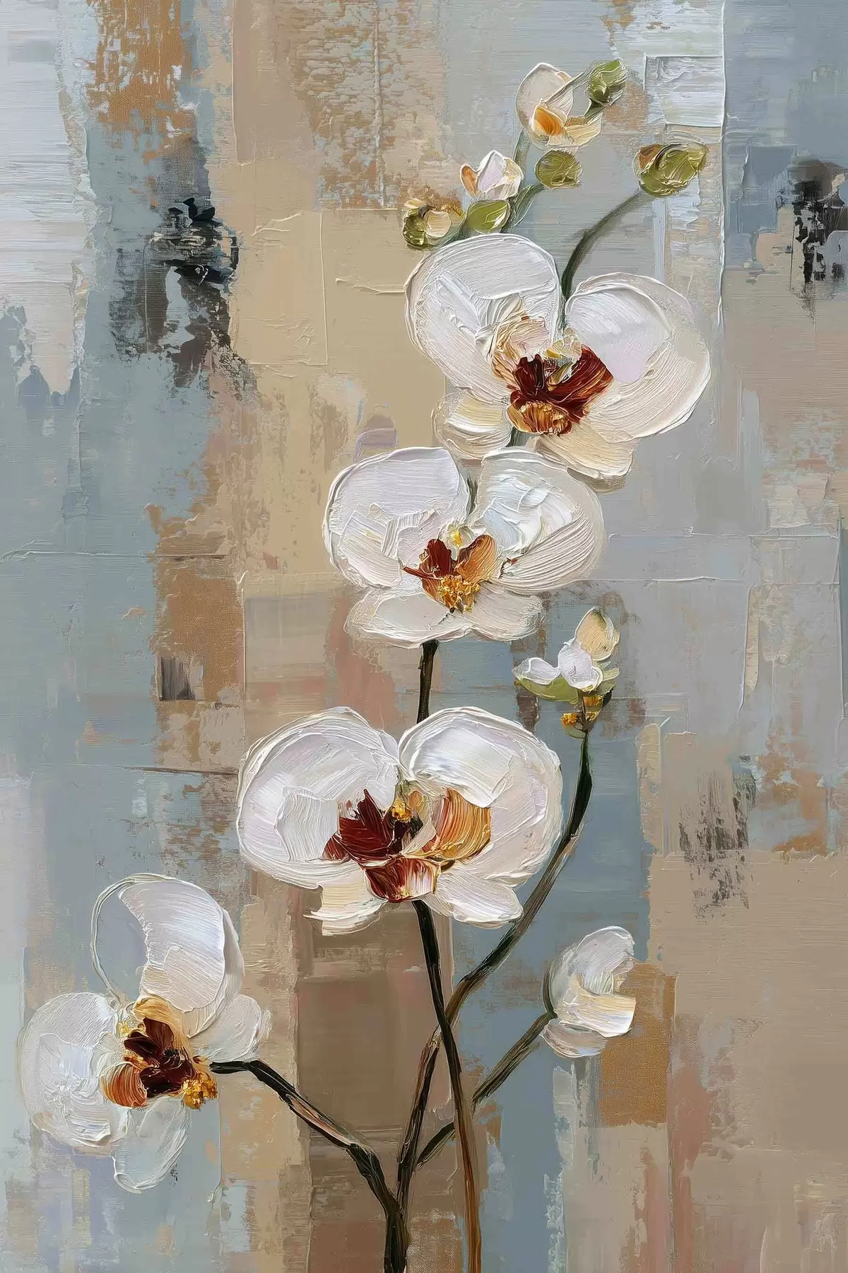 Poster flori de orhidee albe în stilul picturii în ulei Nr f47131