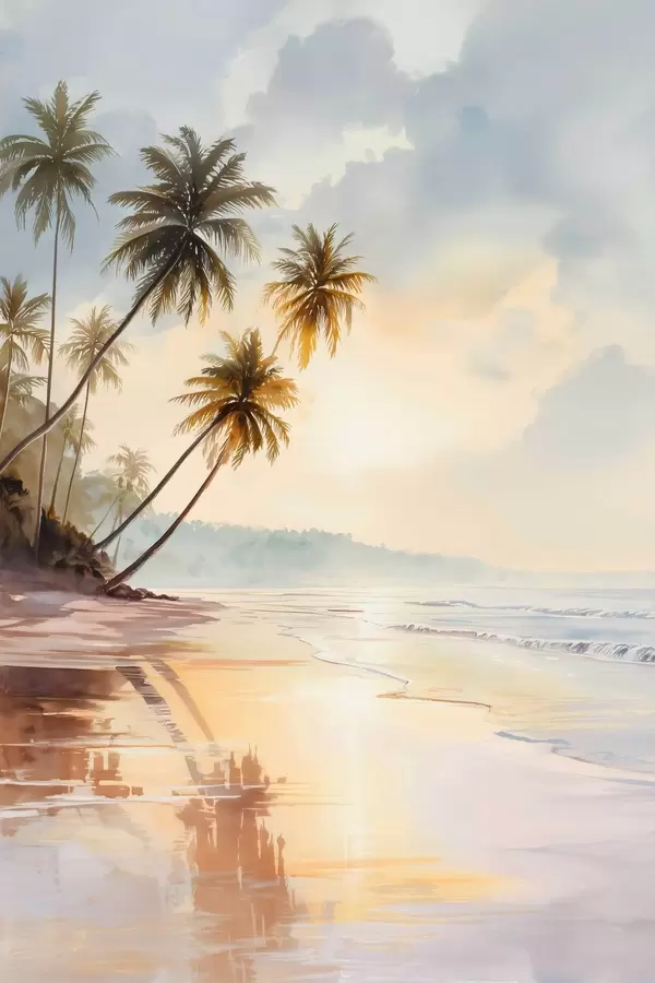 Poster plaja la apusul soarelui pe o insulă în stil acuarelă Nr f47136