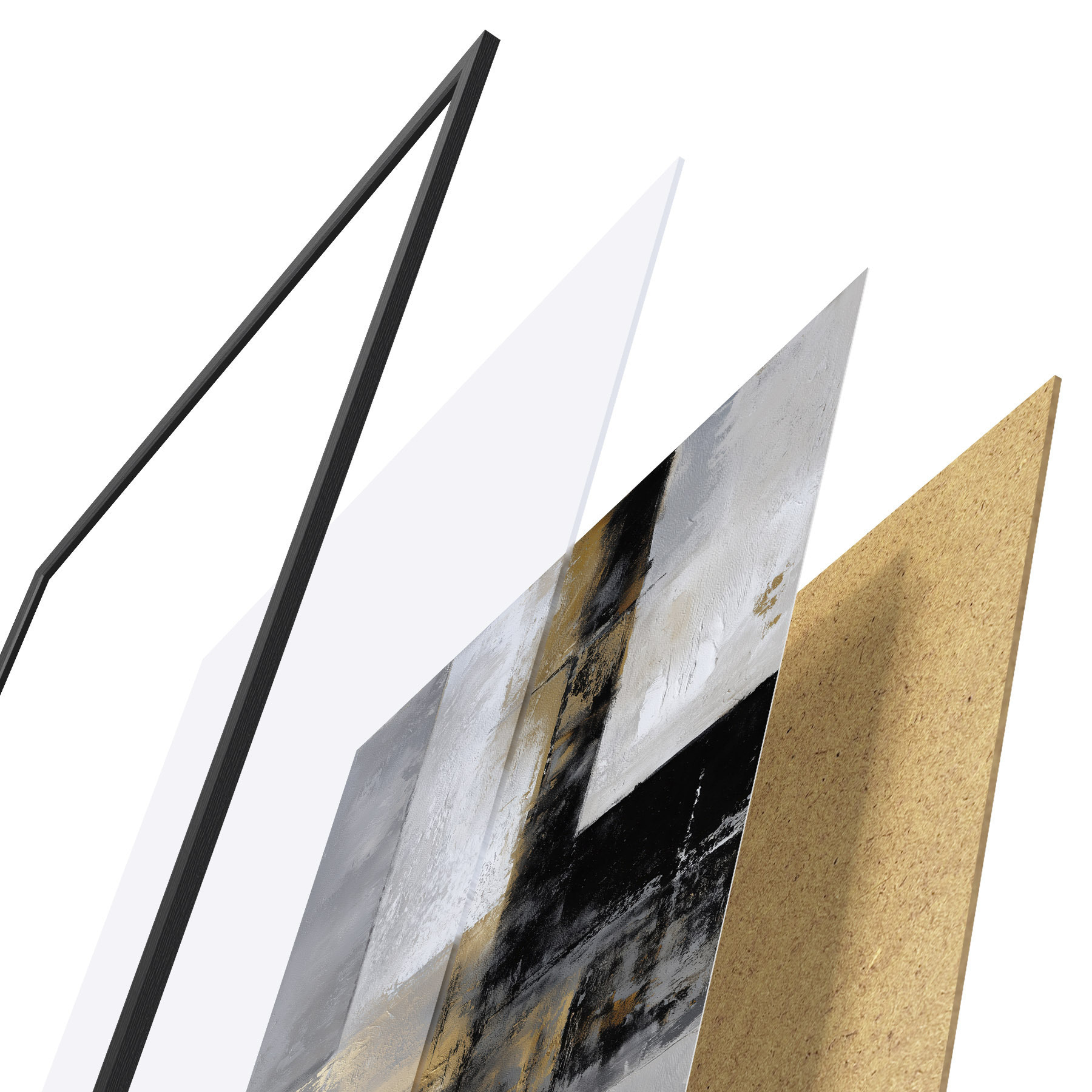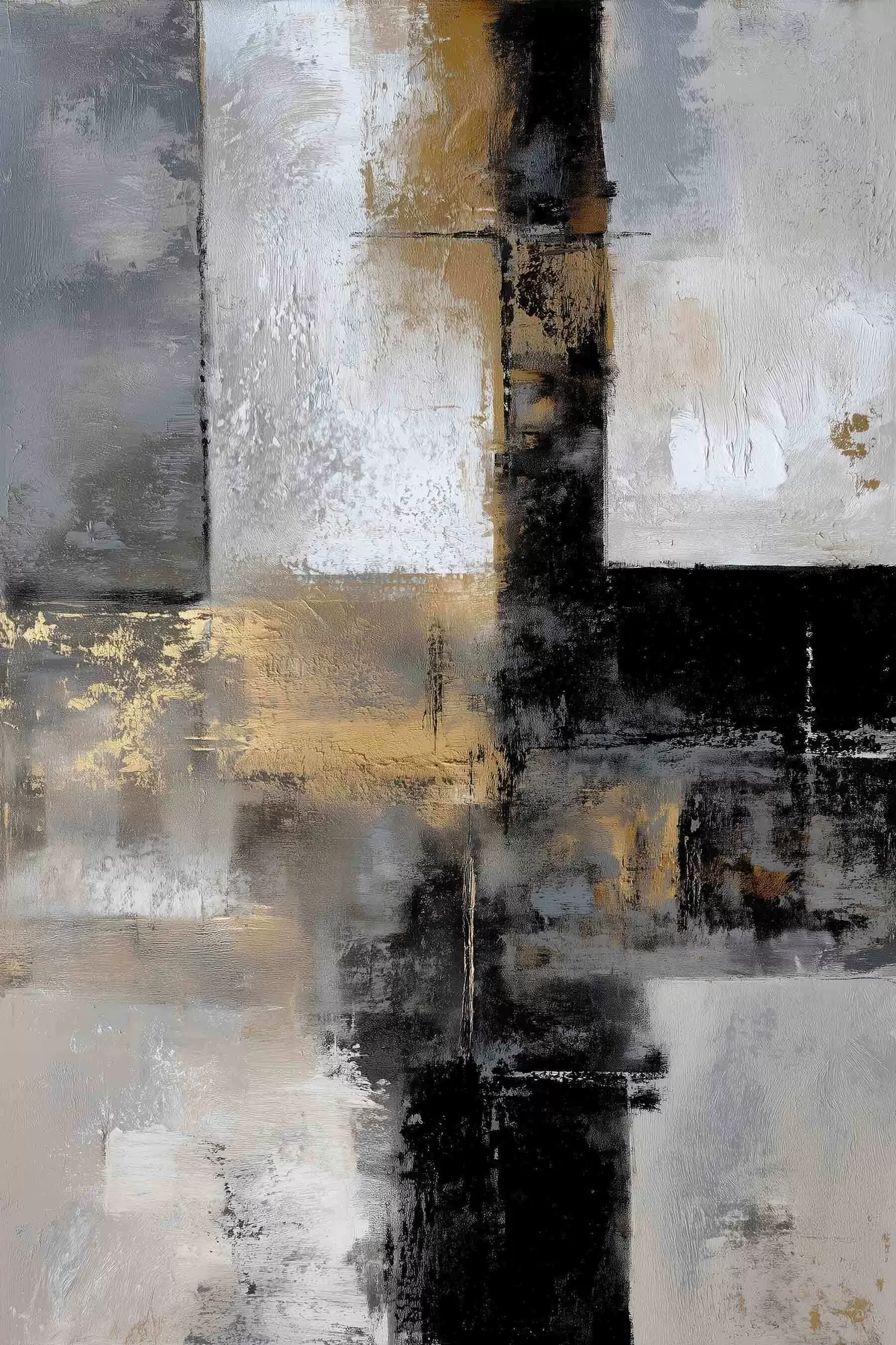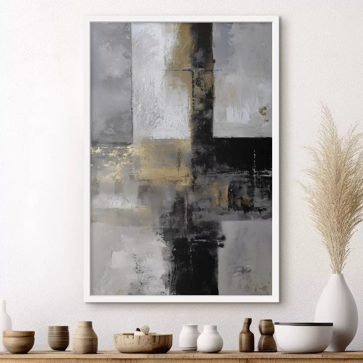 Poster abstracție contemporană texturală în nuanțe de negru, gri și alb Nr f47140