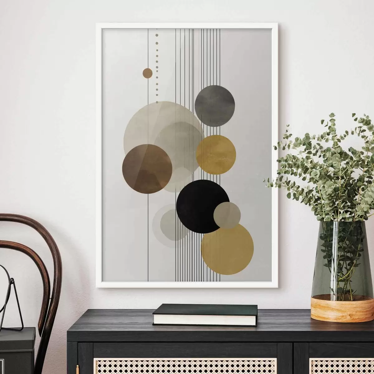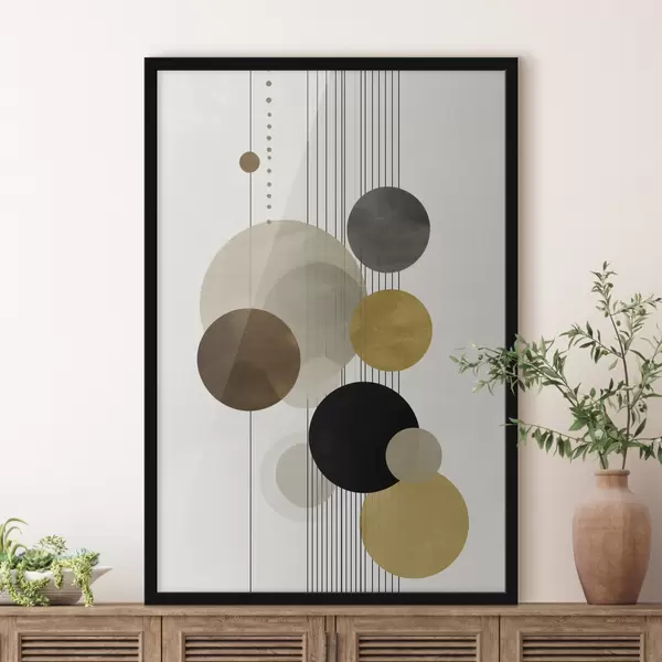 Poster abstracție cu cercuri și linii în culori calde Nr f47237