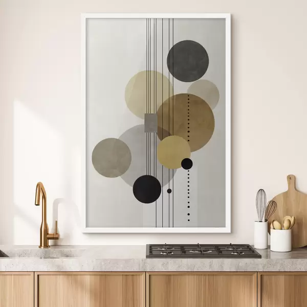 Poster abstracție cu cercuri și linii în culori calde Nr f47238