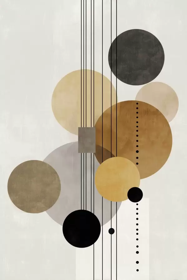 Poster abstracție cu cercuri și linii în culori calde Nr f47238