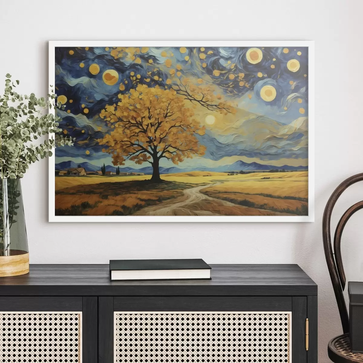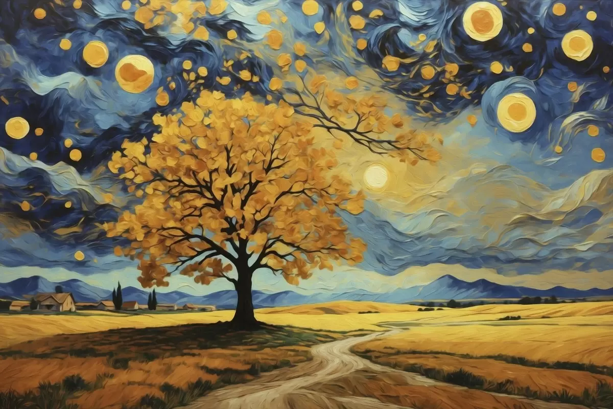 Poster Peisaj cu un copac și cer înstelat viu colorat Nr f47255