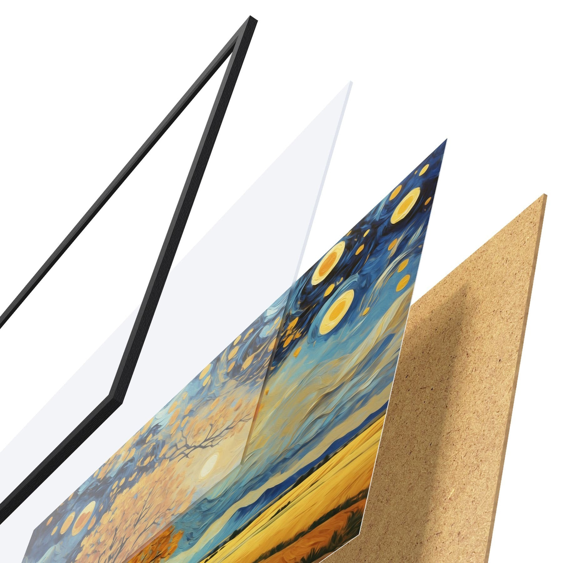 Afișul constă dintr-o ramă, plexiglas, imagine imprimată și suport din PAL. Posterul poate fi agățat imediat pe perete datorită suporturilor de pe spate.