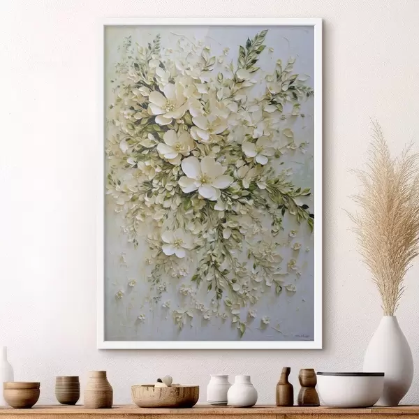 Poster Compoziție mare din flori și frunze crem f47267