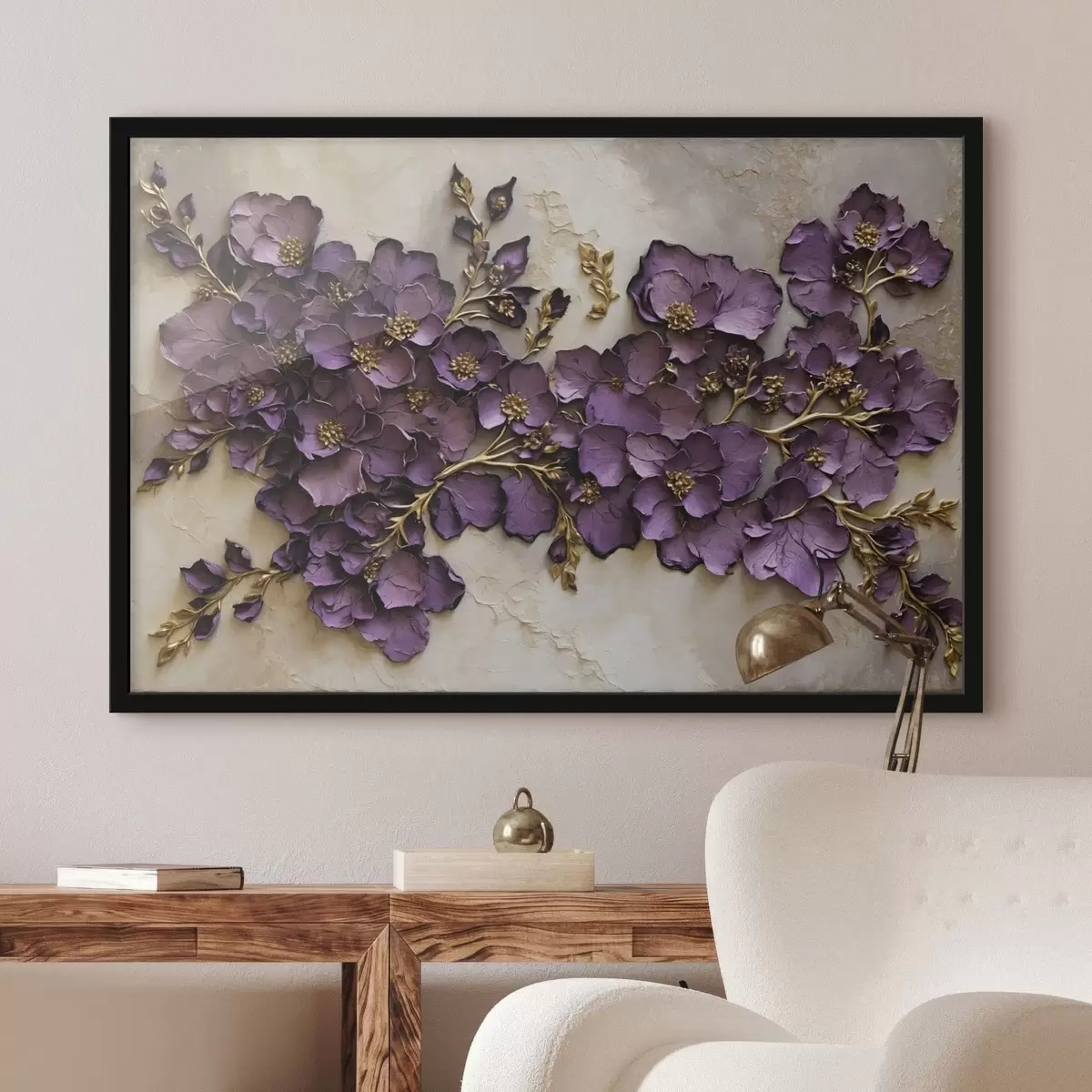 Poster Aranjament floral cu flori mov și accente f47277