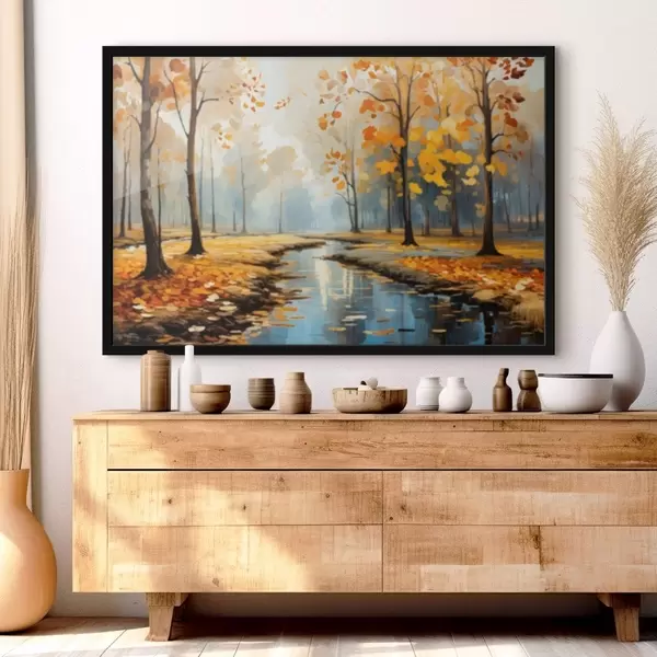 Poster Pădure de toamnă cu un pârâu și frunze galbene Nr f47278