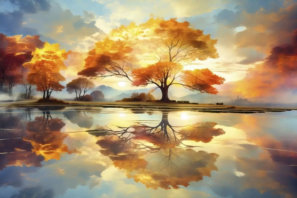 Poster Copaci vii reflectați în apă Nr f47287