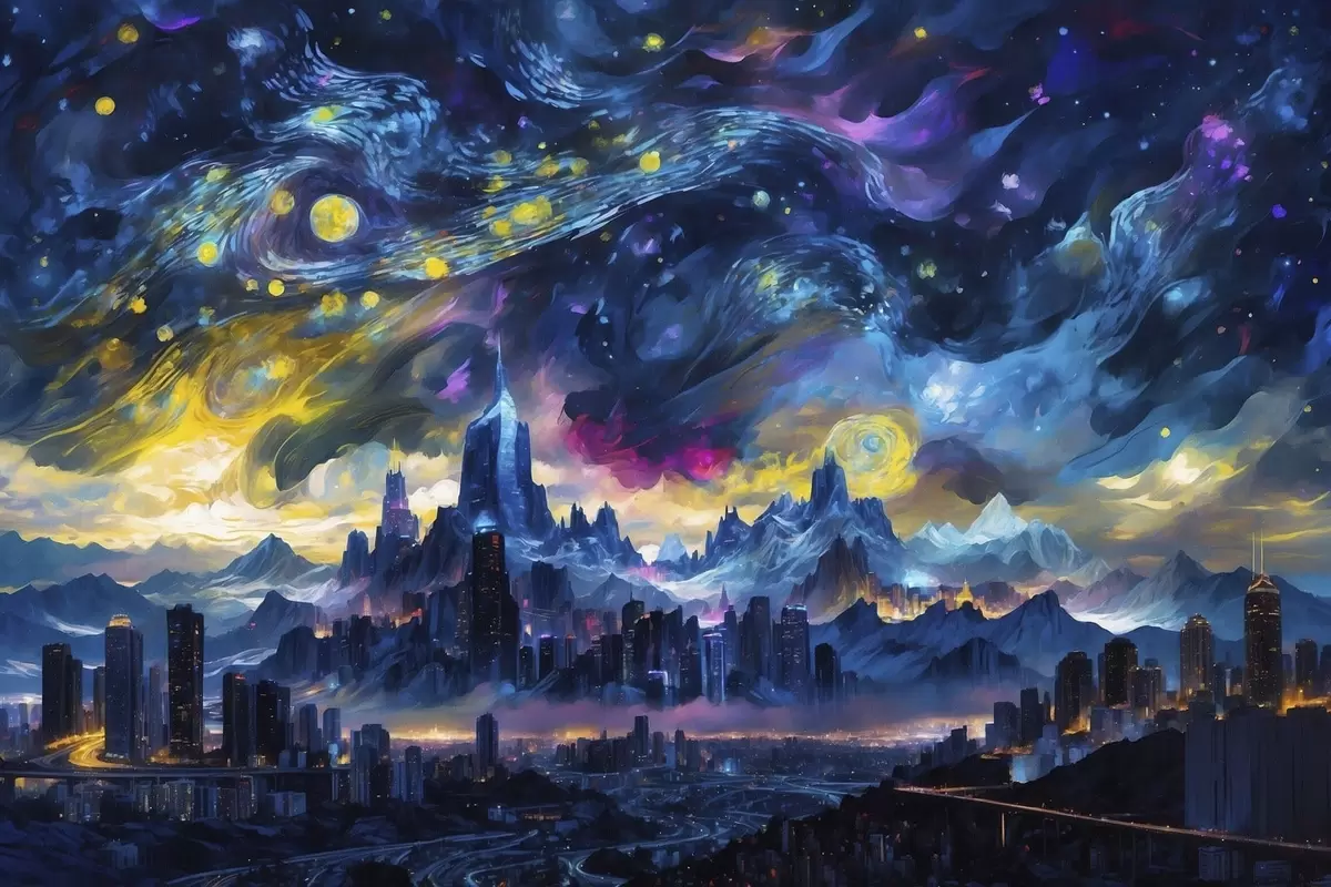Poster Orașul fantastic sub cerul strălucitor al nopții Nr f47288