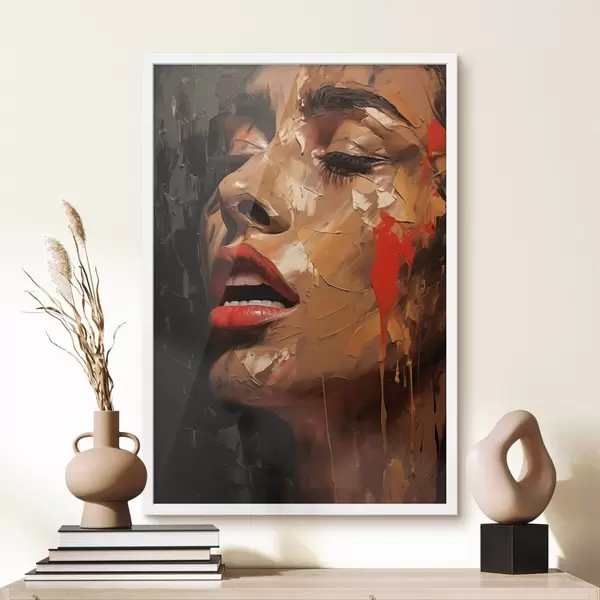 Poster Portret feminin în tușe calde și tonuri roșii f47294