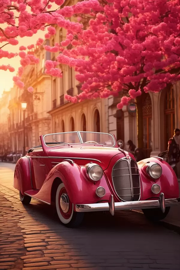 Poster Mașină roz sub copaci înfloriți Nr f47295