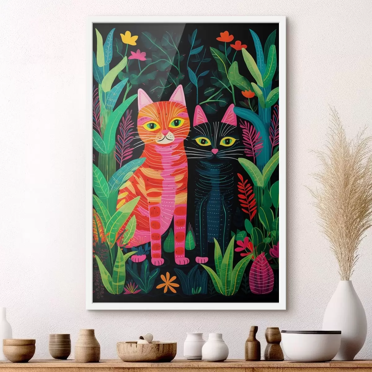 Poster Două pisici stilizate printre plante vii Nr f47298