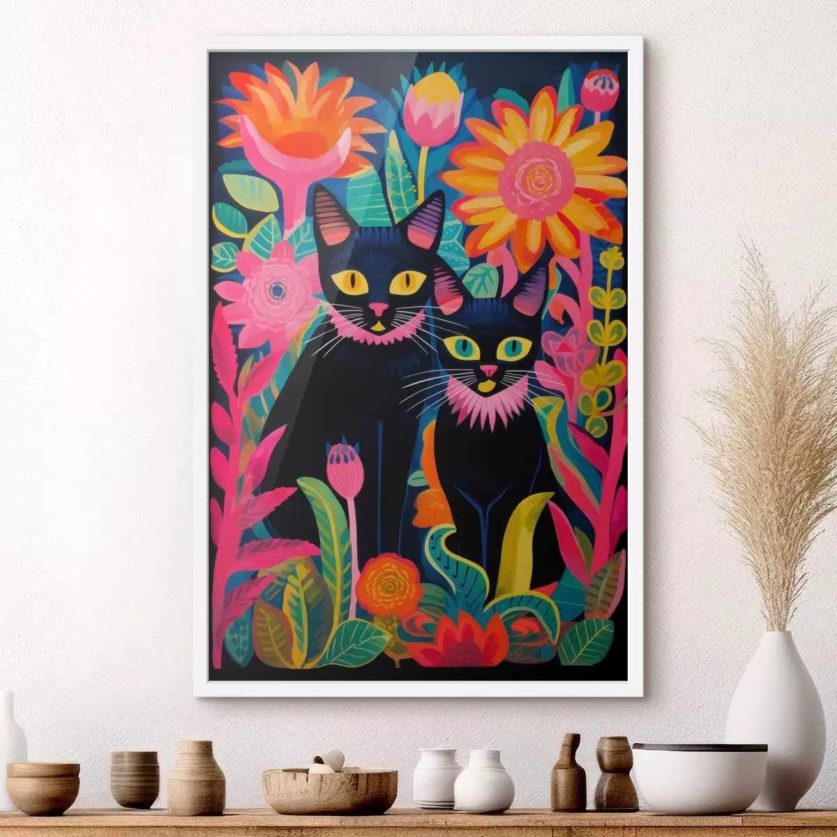 Poster Două pisici negre printre flori strălucitoare Nr f47299