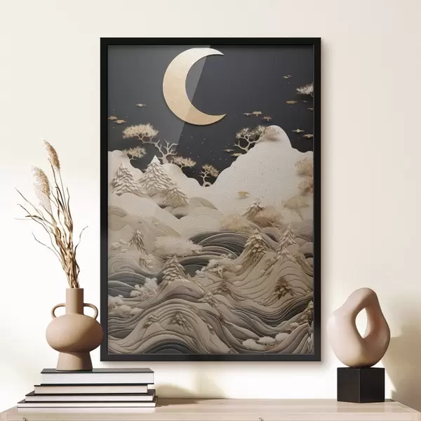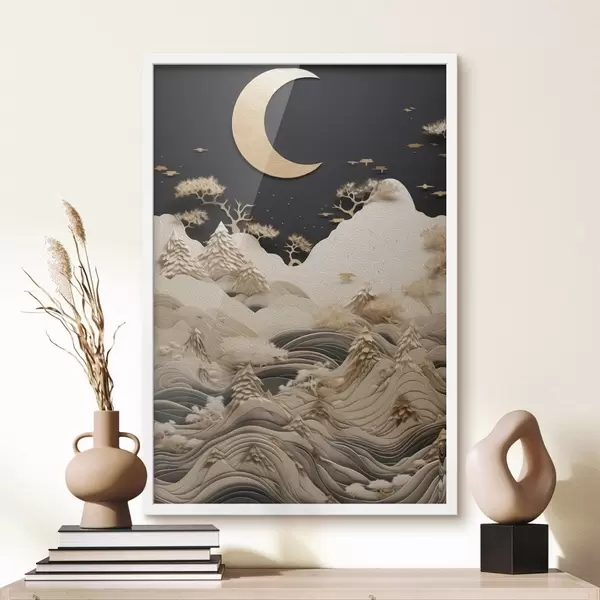 Poster Munți și copaci stilizați sub luna plină Nr f47300