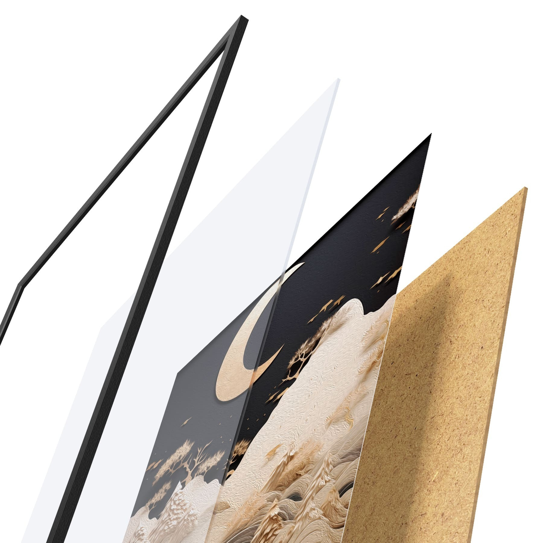 Afișul constă dintr-o ramă, plexiglas, imagine imprimată și suport din PAL. Posterul poate fi agățat imediat pe perete datorită suporturilor de pe spate.
