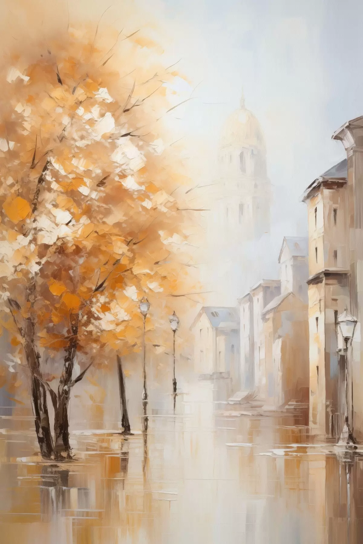 Poster Stradă cu copaci și o cupolă în ceață Nr f47304