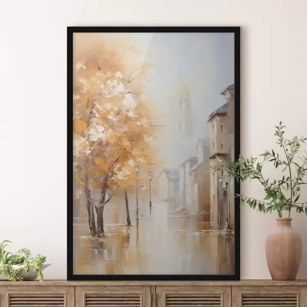 Poster Stradă cu copaci și o cupolă în ceață f47304