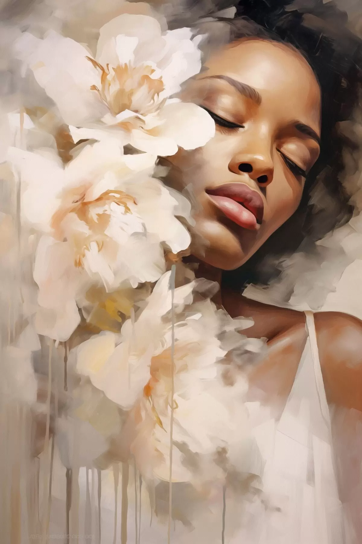 Poster Portret feminin lângă flori mari Nr f47307