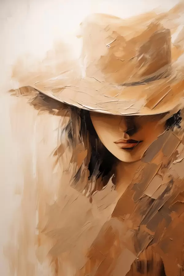 Poster Femeie cu pălărie, pictată cu tușe calde și texturate Nr f47315