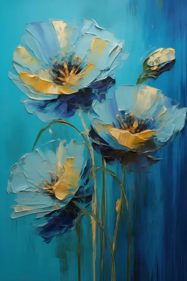 Poster Flori albastre pe un fundal viu colorat Nr f47324
