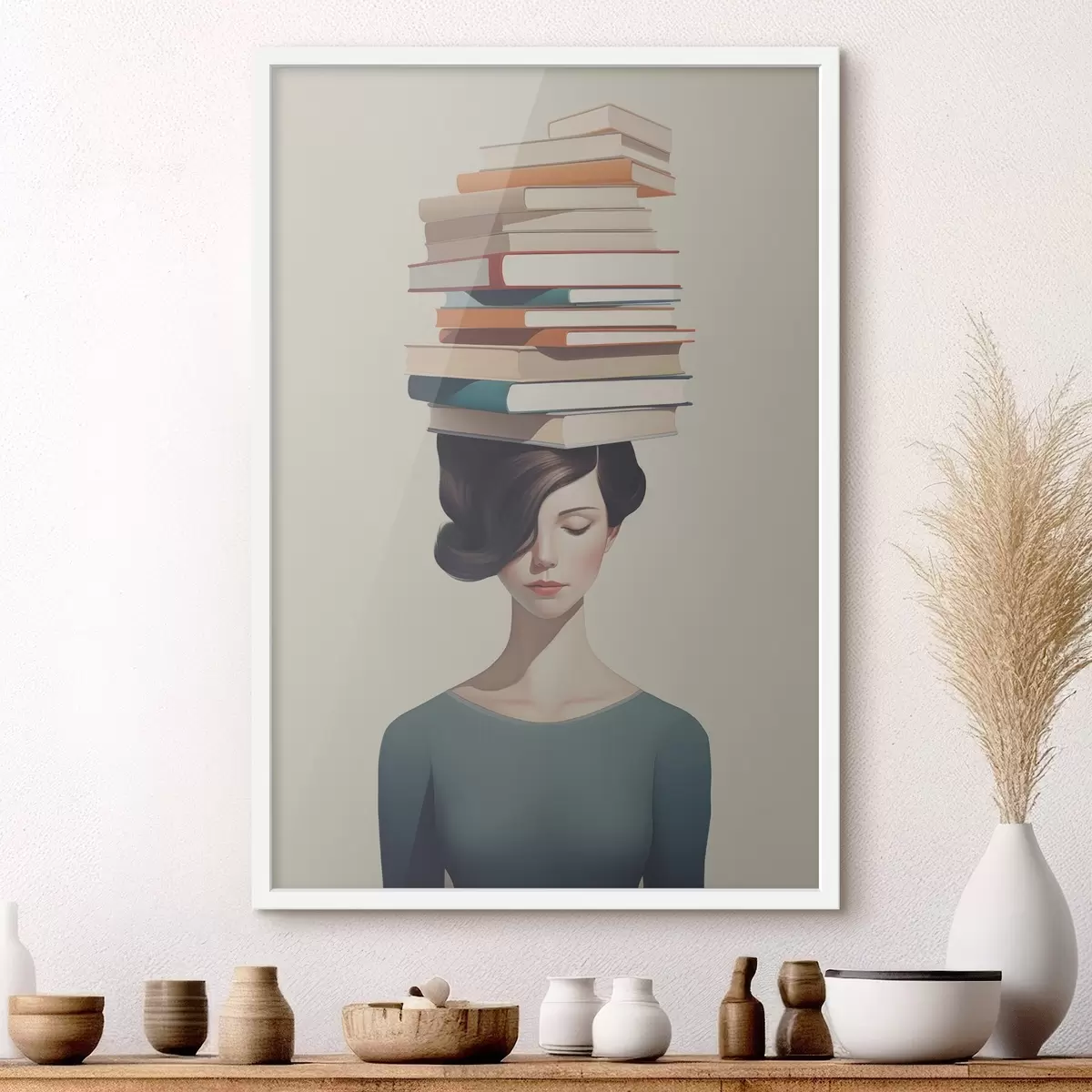 Poster Portret suprarealist al unei fete cu cărți f47334