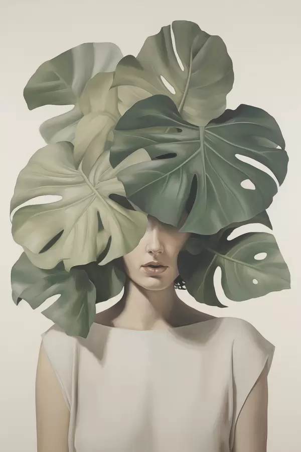 Poster Portret abstract al unei fete cu frunze de monstera Nr f47336