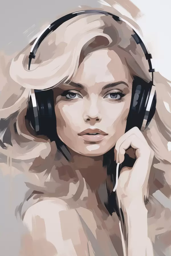 Poster Portretul unei fete cu căști f47410