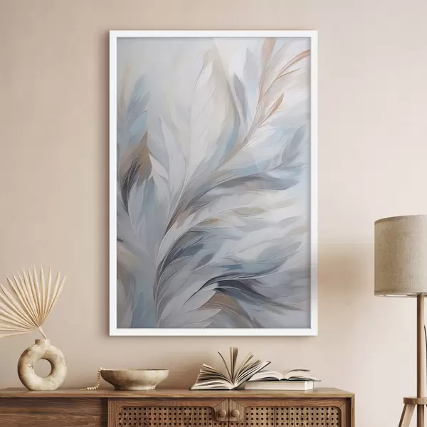 Poster Pene delicate de culoare albastru deschis și maro, cu o textură moale și eterică, pe un fundal alb. f47416