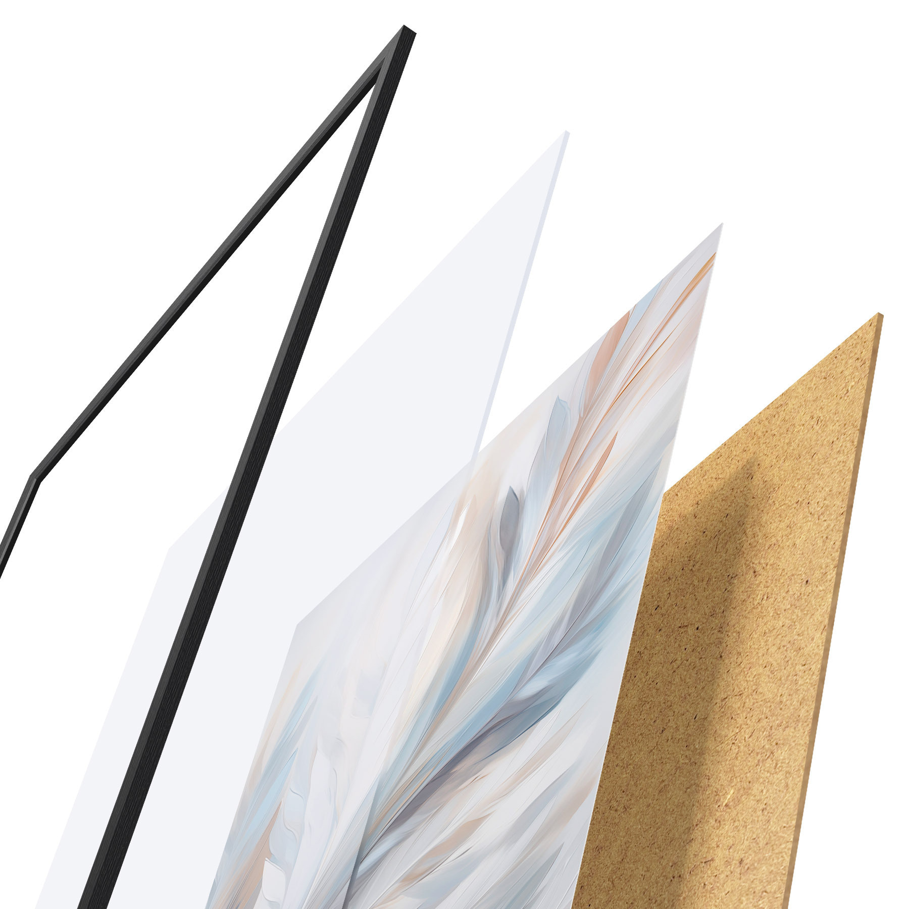 Poster Pene delicate de culoare albastru deschis și maro, cu o textură moale și eterică, pe un fundal alb. Nr f47416