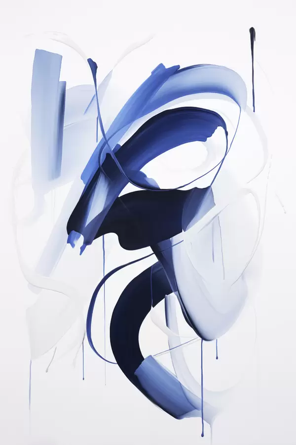 Poster Forme abstracte albastre asemănătoare cu pensulele, cu linii și curbe fluide pe fond alb, artă modernă Nr f47428