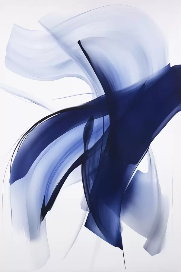 Poster Forme abstracte albastre asemănătoare cu pensulele, cu linii și curbe fluide pe fond alb, artă modernă Nr f47429