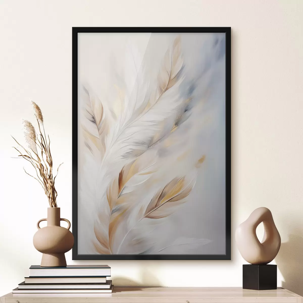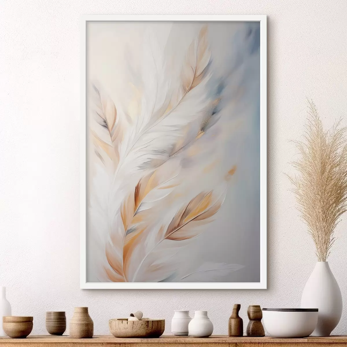 Poster Pene mari și moi, cu o combinație de nuanțe de alb, galben și maro, pe un fundal abstract și deschis. f47443
