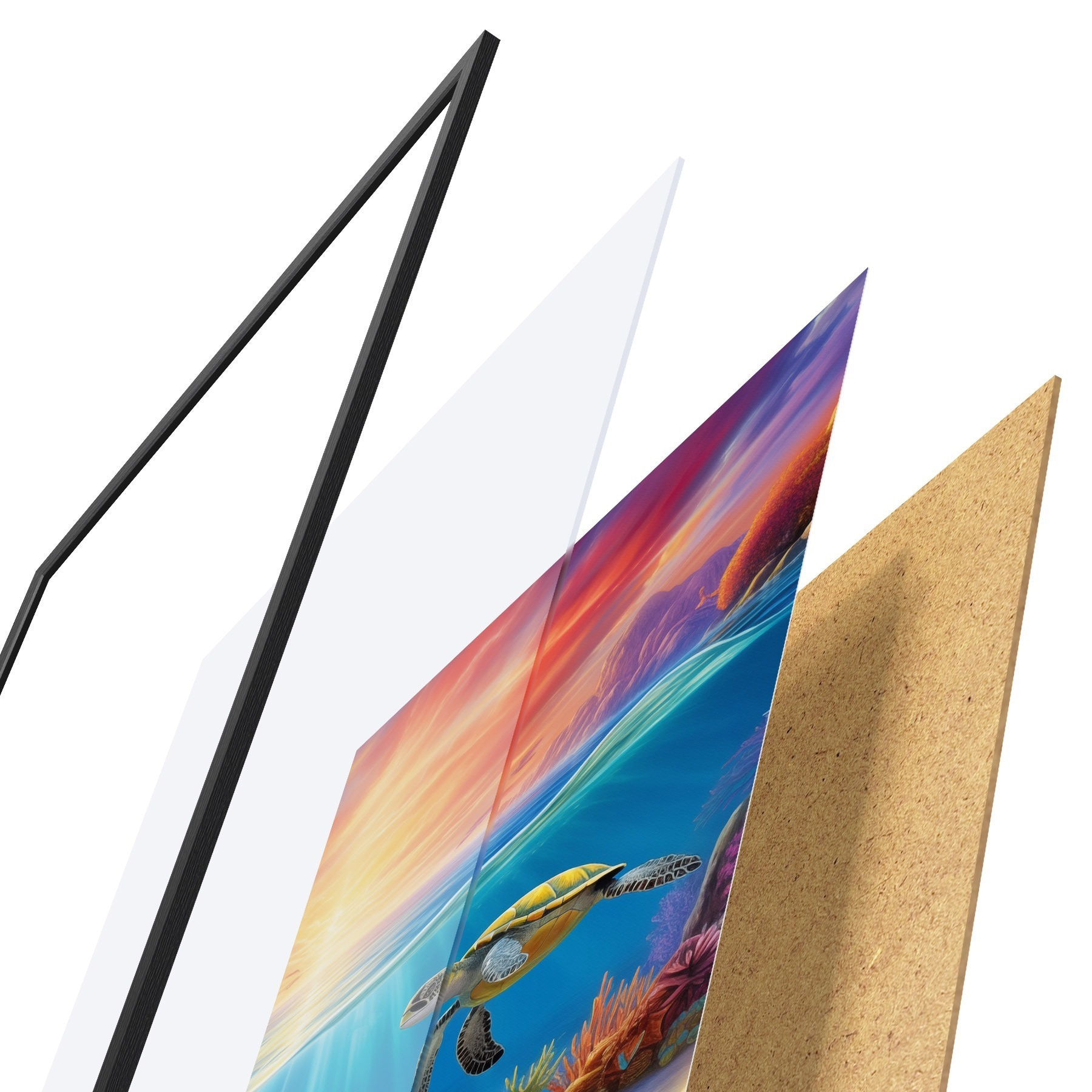 Afișul constă dintr-o ramă, plexiglas, imagine imprimată și suport din PAL. Posterul poate fi agățat imediat pe perete datorită suporturilor de pe spate.