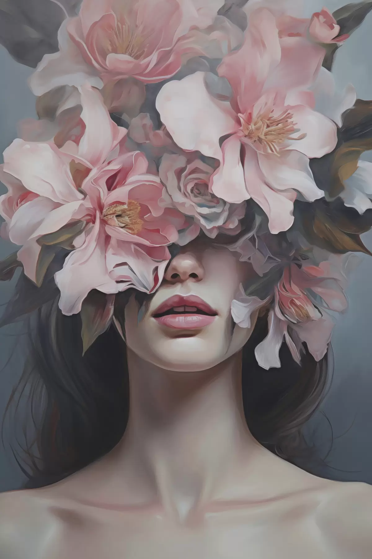 Poster Portret suprarealist al unei femei cu flori Nr f47489