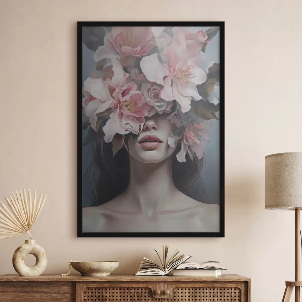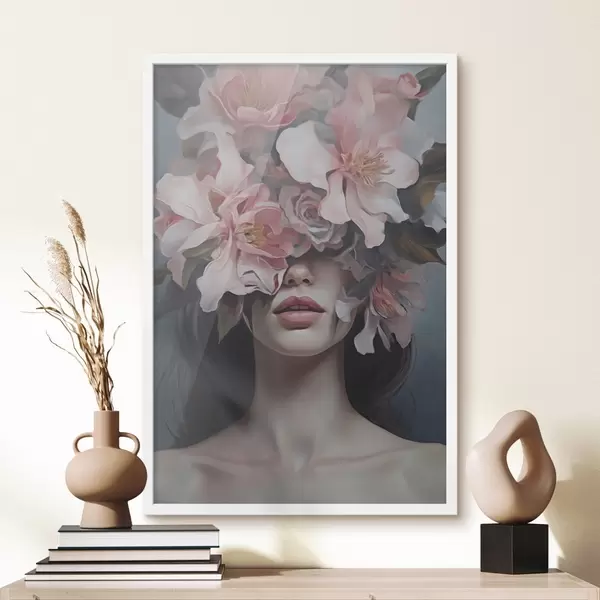 Poster Portret suprarealist al unei femei cu flori f47489