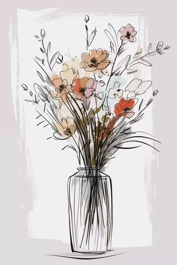 Poster Flori într-o vază imitație a unui desen Nr f47495