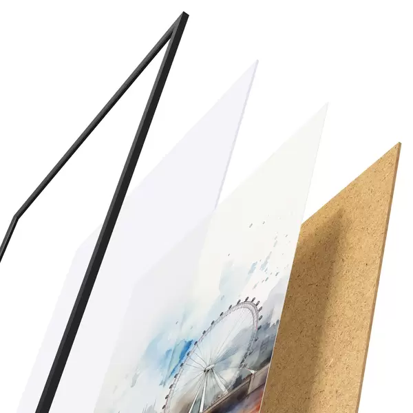 Afișul constă dintr-o ramă, plexiglas, imagine imprimată și suport din PAL. Posterul poate fi agățat imediat pe perete datorită suporturilor de pe spate.