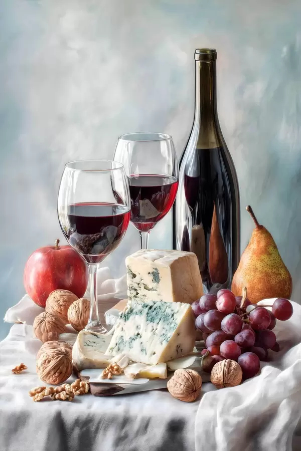 Poster natură moartă cu vin, brânză și nuci Nr f47686