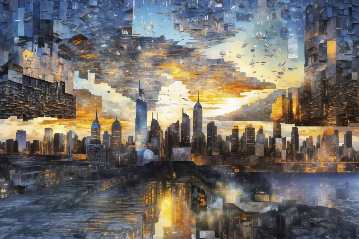 Poster Peisaj urban fantastic cu un cer fragmentat Nr f47768