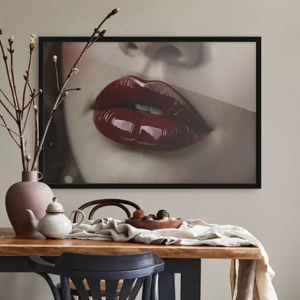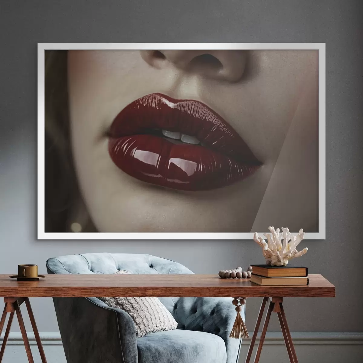 Poster Imagine foarte apropiată a buzelor roșii lucioase Nr f47772