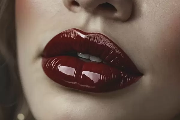 Poster Imagine foarte apropiată a buzelor roșii lucioase Nr f47772