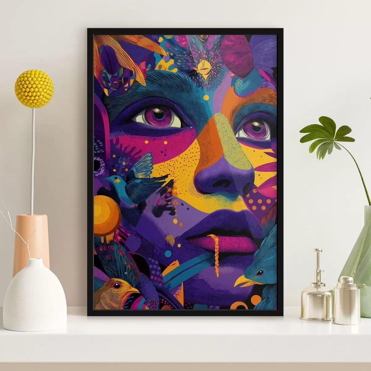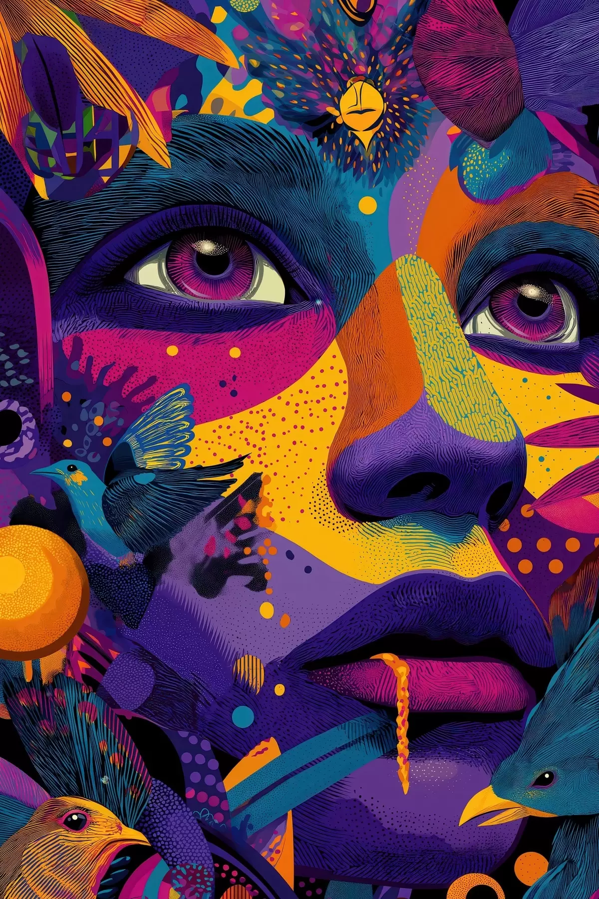 Poster Portret psihedelic cu păsări f47790