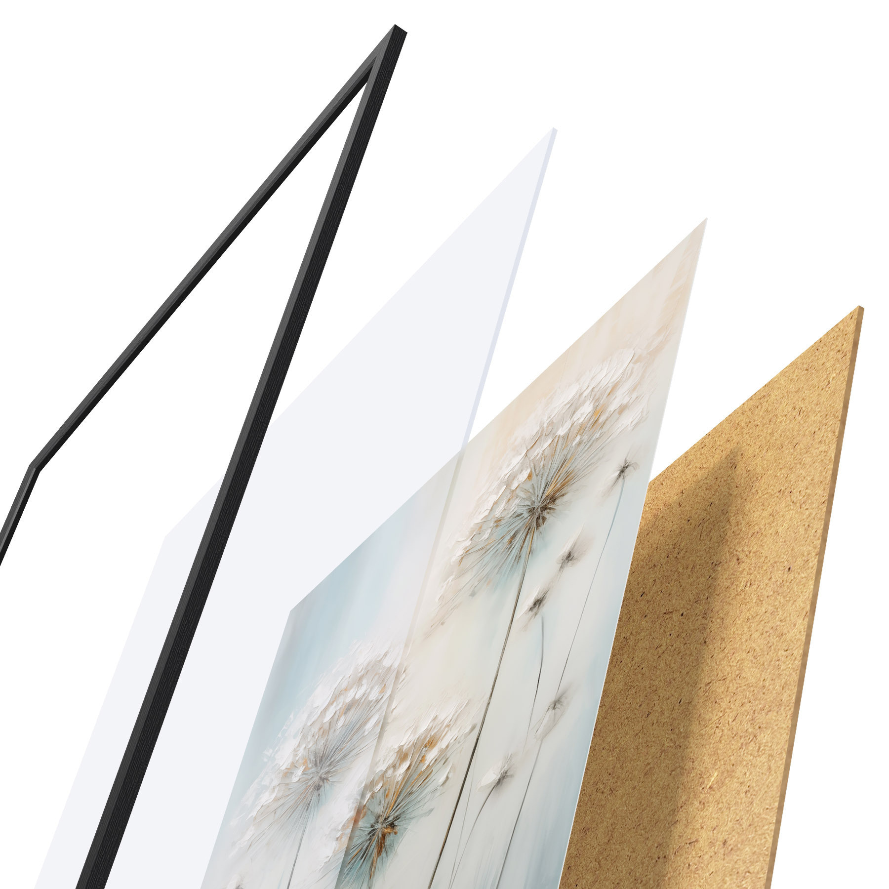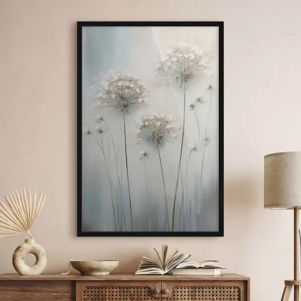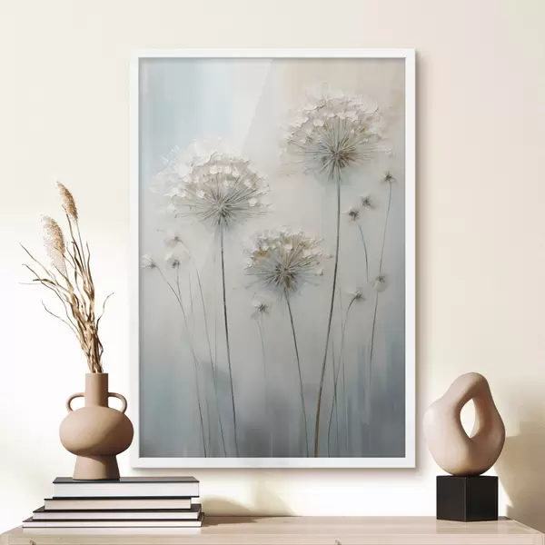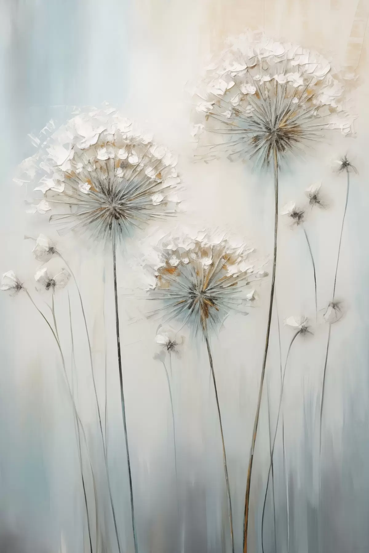 Poster Stil de pictură texturat cu păpădii pe un fundal albastru și alb delicat f47855