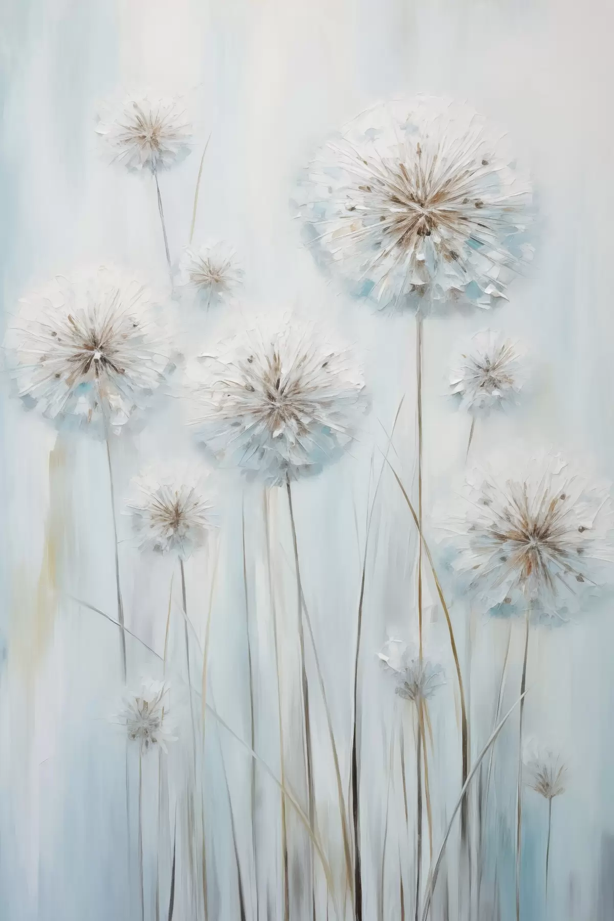 Poster Stil de pictură texturat cu păpădii pe un fundal albastru și alb delicat Nr f47856