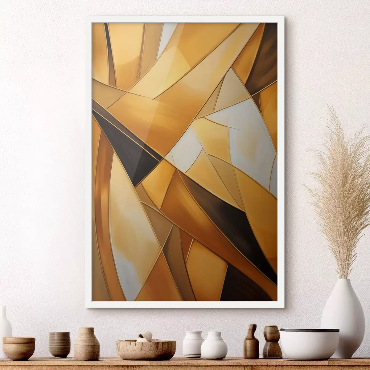 Poster Forme geometrice abstracte în nuanțe de portocaliu, maro și alb, cu contururi subțiri pe un fundal texturat f47863